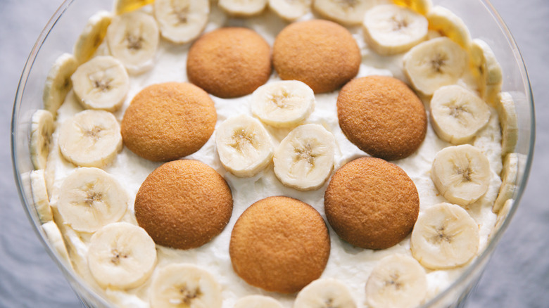 But while the late 19th century brought an abundance of bananas, Southern Living claims that the banana pudding we recognize today with vanilla pudding, banana slices, and Nabisco Vanilla Wafers was not born until 1921 when Laura Kerley published her now-classic recipe. The addition of vanilla wafers is one of the keys to banana pudding's popularity. According to Serious Eats, the Nabisco company picked up Laura Kerley's recipe and printed it on the side of their Wafer boxes. The massive marketing being done by the United Fruit Company, the support of the Nabisco company, and the vicinity to the banana's source made the Southern United States the heart of banana pudding obsession.