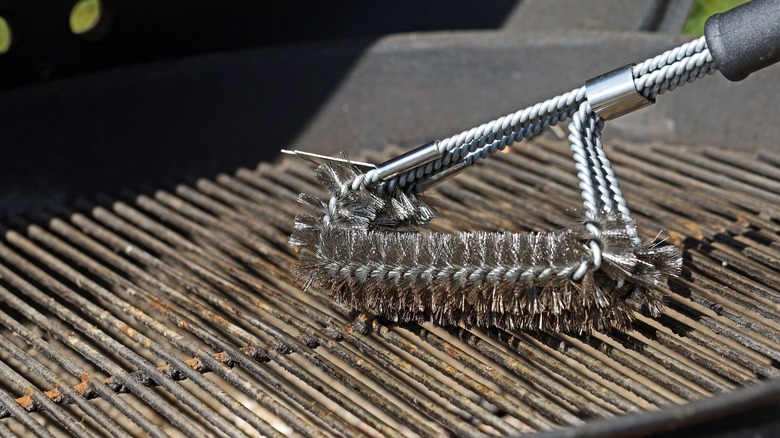 Dishwashers aside, you only need a good grill brush, heat, and some elbow grease to optimally clean your grill, according to Derek Wolf, founder of Over the Fire Cooking (via NBC News). You'll need a sturdy brush built specifically for grills, as the high temperature can cause the bristles on weaker brushes to melt or fall off. Should you find yourself without one, you can use a ball of aluminum foil instead, which is a handy substitute if you're in a pinch, according to CNET.