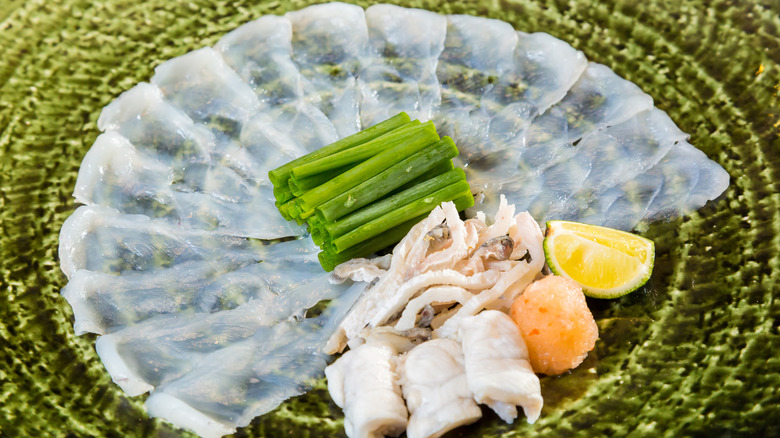 So, is eating fugu worth the risk? According to The New York Times, it isn't particularly flavorful. Many Westerners describe the fish as "bland." As noted by Insider, fugu is typically served plain in the form of thinly-sliced sashimi which is aged for 24 hours before serving. However, when The Times interviewed a Japanese local, he had a more nuanced opinion of fugu, describing it as "firm and elastic" with a delicate flavor with notes of umami. It also has an undeniable appeal to daredevils who like a little sense of danger with their dinner.