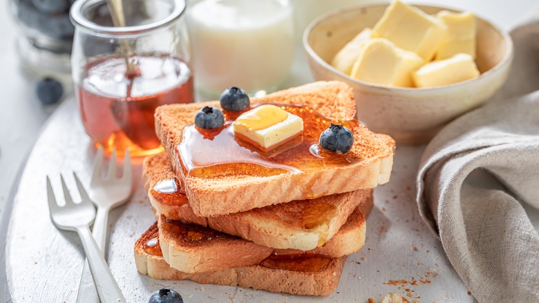 French toast is French, right? It's in the name, after all! Well, it would seem that French toast's modern moniker is a reference, specifically, to its present-day iteration. In the 1600s, slices of bread that had been saturated with orange juice, sugar, and wine first came to be called French toast, according to MasterClass. Since then, it's become the breakfast treat we all know and love today.