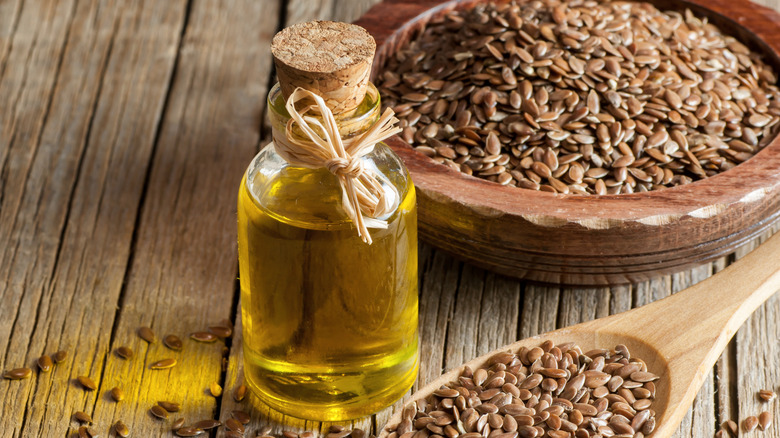 Flaxseed oil has been around for a long time. It comes from flax, which, according to the Cleveland Clinic, is one of the oldest crops in the world. Archeologists can date the use of flax to around 30,000 years ago, and the see has many functions, including as clothing fibers, industrial uses (where it is sometimes called linseed oil), and cooking. In particular, most home cooks have gotten hip on using flaxseed oil to season, and the reasons might be surprising.