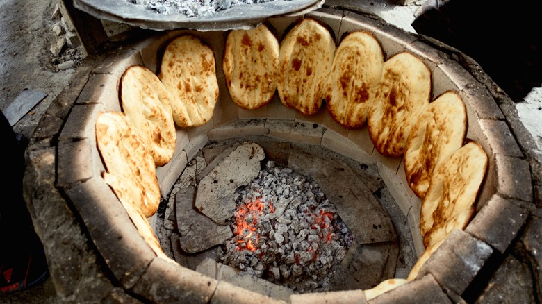 Thin dough likely comes from Mesopotamia, concocted with a mix of wild wheat and barley. Since its creation, flatbread has never lost popularity. Wide varieties continue to be consumed around the world — from Indian roti and Chinese jianbing to Mexican tortillas, per SBS. A perfect vehicle for wraps or accompaniment to a stew, the cracker-thin bread is eaten in diverse ways. Such a range of consumption is doubly applicable to lavash, a labor-intensive variety of Armenian flatbread. Integral to Armenian culture, lavash is folded over food, used as a spoon, or simply served as a side. Cooked in a clay oven called a tonir and torn only by hand, this delectable large bread boasts many unique attributes (via TasteAtlas). Let's dive into what makes it so special.