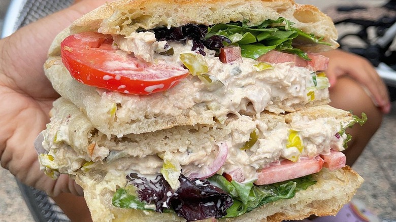 The menu comes stocked with exactly what you would think of when entering an Italian sandwich shop — porchetta, roast beef, mortadella, salami, and Caprese for vegetarians. There is one item on the menu, however, that has caused some confusion. It's the tonno sandwich. Anyone familiar with the Italian language — or the top shelf at the grocery store — will know that "tonno" translates to "tuna." This seems relatively straightforward, but it's not because the tonno sandwich at Cicci de Carne is both tuna and not tuna.