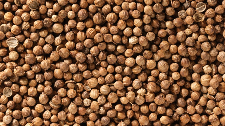 Coriander can be a bit perplexing since it has different definitions depending on where you come from. In the United States, coriander refers to the seeds of cilantro, but in many other English-speaking countries, they don't say cilantro at all and use the word coriander to refer to the entire plant: Leaves, stems, seeds, and all (per So Delicious). The seeds, which we'll focus on here, have a rather subtle sweet-sour flavor. So when you're cooking with coriander, it's best to use it in conjunction with a blend of other spices.