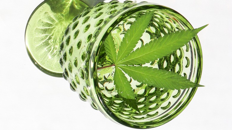 When you mix alcohol and CBD, says Healthline, they may "amplify each other's effects." The alcohol provides an intoxicating quality, and the CBD adds an element of grounded calmness. It's a one-two of pleasure and peace. Scientifically, that makes sense since CBD lowers cortisol, the stress hormone, per Brit + Co. Bon Appétit compares the feeling of drinking a cocktail with 0.05 milligrams of CBD to that "first wave of sedation" felt when smoking pot, but without the loss of motor control or spatial awareness.
