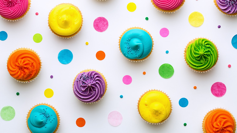 But once you've made this ingredient swap, you still need to add food coloring to your frosting before you start customizing your cupcakes. After all, you don't want to pipe colorless flowers onto a festive birthday cake or create an all-white Santa sugar cookie. However, this step is also where things tend to get messy. Because if you hope to decorate your cake with more than one color of buttercream frosting, you'll have to use different bowls to make each batch — right? Well, according to Instagram, that's not always the case, because there is a way to mix several different colors of buttercream with just one dish.