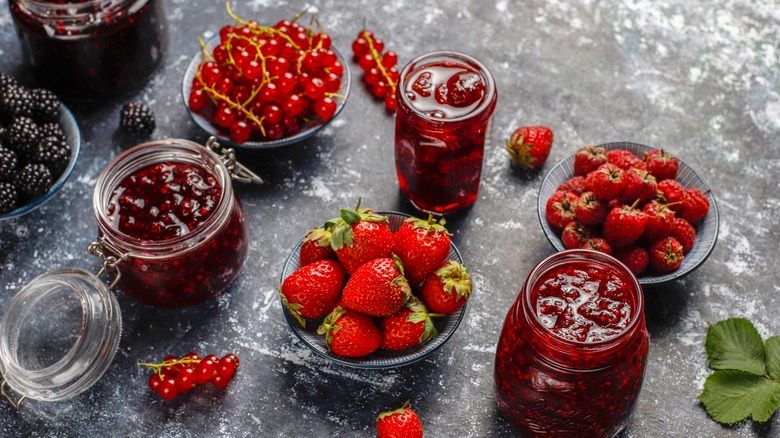 Lebovitz reports that the first step to making jam by the seat of your pants is to, of course, pick and cook as much of the fruit you want to preserve as your heart desires. After that comes the important part. You'll need to accurately measure the amount of fruit you're working with. As Lebovitz notes, the golden ratio to jam-making involves using "¾ of the amount of sugar" for the fruit you have. The chef provides an example, stating that if you have 4 cups of fruit then you'll need to throw in 3 cups of sugar to ensure your fruit is correctly preserved. And once you've memorized this simple rule, you'll never have to look at a jam recipe again.