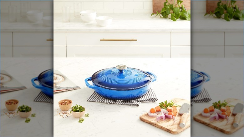 Lodge has long been a go-to for cooks and chefs in need of quality cast iron cookware, making pans, griddles, and more in South Pittsburg, Tennesee since 1896 (via Lodge). But Lodge does more than just plain old cast iron, offering a full line of beautiful porcelain enamel-coated products, such as this 3.6-quart casserole dish.