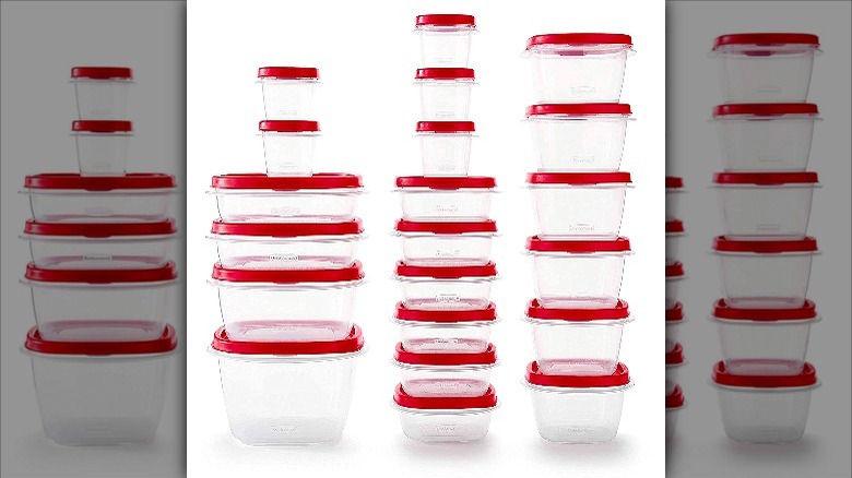 The Rubbermaid 42-Piece Food Storage Containers with Lids, Salad Dressing and Condiment Containers, and Steam Vents, Microwave and Dishwasher Safe, Red (Pack of 21) are on sale starting at just $19.99