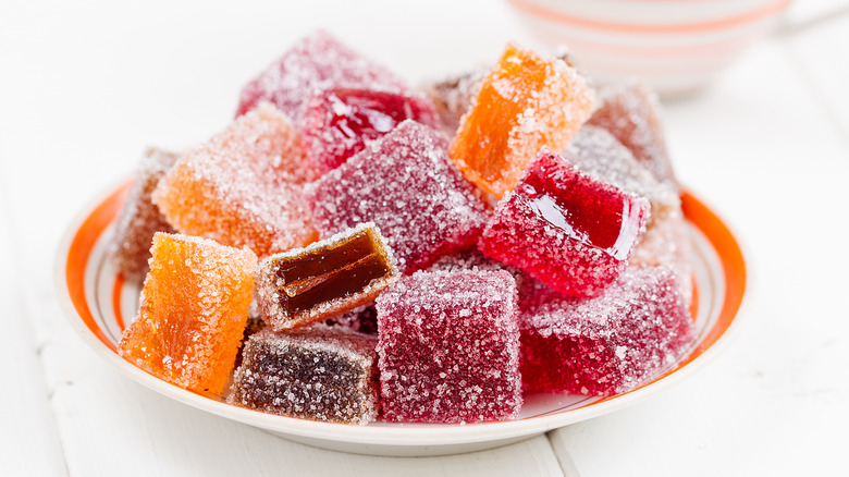 You can imagine something that tastes like an organic Sour Patch gummy, or a Turkish Delight in both appearance and texture. This refined French confectionery has its roots in Roman Antiquity, where fruits were first preserved with large amounts of sugar, per Biscuits et Compagnie. First, we'll find out how this fruit candy developed from an arcane syrup to a chewy palate cleanser.