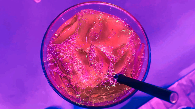 Look at that beautiful dark pink drink. It's nostalgic, somehow, isn't it? Remember being a kid and going out for dinner with your family? The adults at your table probably ordered some grown-up drinks with their meal, right? Maybe a few of them went for a fancy cocktail. And maybe you got your own fancy mocktail — a sweet, maraschino cherry-garnished Shirley Temple. With Halloween Horror Nights' Dirty Valentine, you get the grown-up version of that.