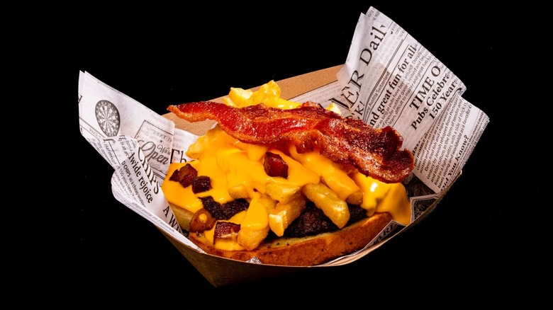 If you came to Halloween Horror Nights looking for healthy treats, you're probably in the wrong place. But, if you're looking for a delicious, meaty, cheesy treat, this one should be your go-to. The Haunted Horseshoe is an open-faced burger, complete with garlic Texas toast, jalapeño bacon, and spicy candied pork belly, all served atop crinkle fries slathered in cheddar cheese sauce.