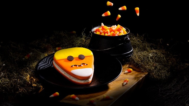 He's cute, isn't he? Major Sweets is very Instagrammable. But this ranks low on our list for being a little too kid-friendly. Halloween Horror Nights is geared toward teens and adults. The houses are scary, the characters wandering the streets are there to freak you out (and they are great at it), and there are alcoholic drinks for sale at almost every kiosk and restaurant. The sandwich looks amazing, with its festive candy corn appeal. It's made of two "zombie candy corn" sugar cookies with sweet corn ice cream in between. It's aptly named because this sandwich is sweet — like, majorly sweet.