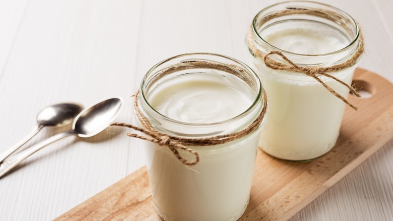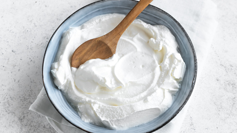 According to Our Everyday Life, you should take precautions by substituting sour cream for yogurt in high-heat recipes. Yogurt tends to separate into curds (the chunky bits) and whey (the watery substance) under high heat, while sour cream does not. This means that sour cream may be a better fit than yogurt in soups and creamy sauces — unless you want to go through the tedious process of tempering your yogurt.