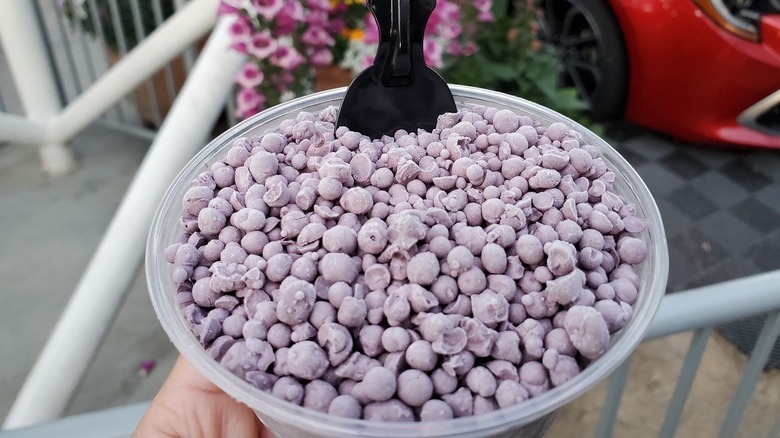 If there's one thing we love, it has to be unconventional desserts. And is there anything less conventional than Dippin' Dots? The tiny, flash-frozen ice cream bits generally come in all the expected flavors, like chocolate and banana split. Don't get us wrong — we love the classics. But when you want to sample a flavor you won't find anywhere else, you have to venture to one of the two Dippin' Dots locations at Knott's Berry Farm. Why? It's the only place in the world that carries the boysenberry version of the ice cream of the future.
