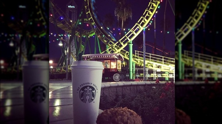 Who says you have to wait until lunchtime to get a sampling of the boysenberry offerings at Knott's Berry Farm? If you want a boysenberry treat first thing in the morning, you just have to check out Charleston Circle Coffee, which serves Starbucks coffee. Sure, you could stick to your standard drip coffee or even branch out and order one of the absolute best Starbucks Frappuccinos, but you should take advantage of the special menu item you can find at this coffee shop: the boysenberry latte.