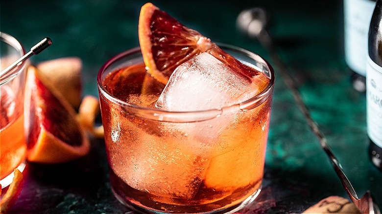 Garnish the drink with your favorite citrus. We recommend oranges, blood oranges, or even grapefruit to pair with the bitter Campari, but lemons and limes work, too. We love the sweet flavor of a whole slice of citrus here, but feel free to use the rind on its own to amplify the flavors of the spirits.