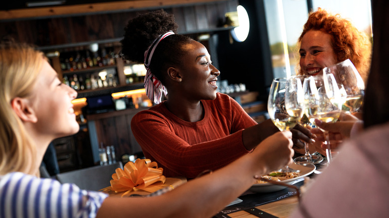 Each restaurant, of course, is different, and there is no hard and fast rule for how long one can remain at the table after their meal is finished, especially if there is half a bottle of wine left to drink. Yet it's important to stay vaguely aware of the time, even while enjoying a night out with friends. If the server is, according to Food & Wine, emptying your wine bottle, clearing the table of finished plates and glasses, conspicuously not recommending dessert, or asking if anything else is needed, it's time to look your server in the eyes, take the hint, and move on.