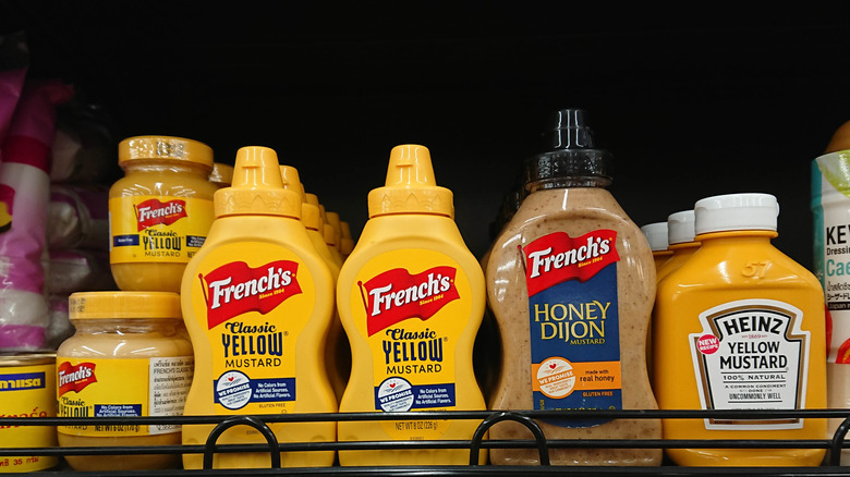 Second only to ketchup, mustard is a condiment with just about as many uses as there are varieties. Drizzle yellow mustard on a ballpark hotdog, dunk nuggets into honey mustard, or whisk Dijon into salad dressings — the ways to add this zesty sauce to your favorite meals are limitless. An ingredient that can be found in anyone's kitchen, there's often some debate as to where mustard is best stored. Should you opt for the pantry, there are a few things to consider beforehand.