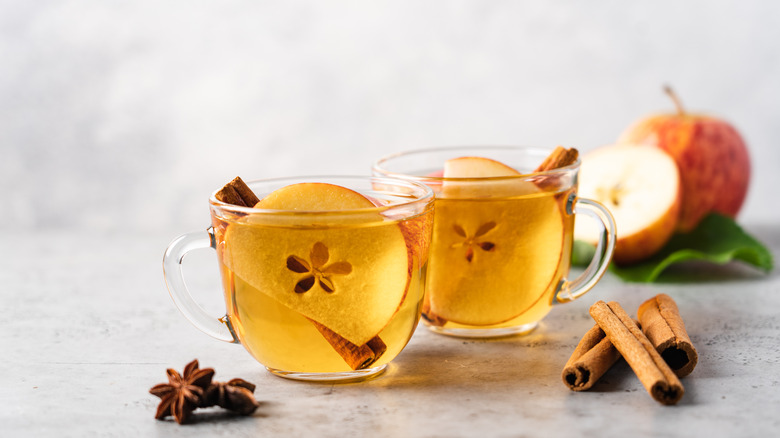 Fall just wouldn't taste like fall without plenty of apples in all their forms, whether eaten out of hand, baked into a classic apple crisp, or crushed into cloudy, sweet-tart apple cider. While apples store exceptionally well and are available year-round, they truly shine during the fall harvest, when the sugars in the fresh fruit are at their peak (via University of Utah). It's no surprise, then, that apples show up in full force in so many autumn dishes and desserts — and in that magical fall elixir known as apple cider.