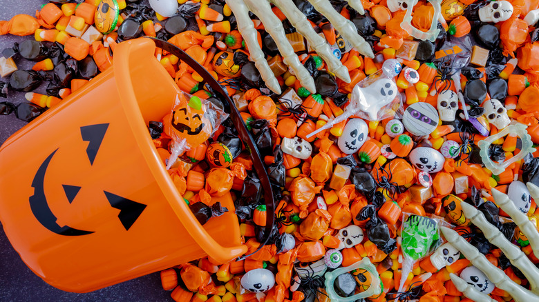 Though most Halloween candy is store bought in America, the English often made their sweets at home to celebrate Guy Fawkes Day. One of the most popular treats of the past is treacle toffee: A dark colored, hard toffee made from black treacle (or molasses, for an easier substitution), corn syrup, and demerara or brown sugar, according to Delighted Cooking. The sweet goes by several different names, including bonfire toffee, plot toffee, and tom trot (via ChronicleLive).