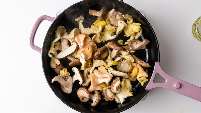 Fry half the mushrooms