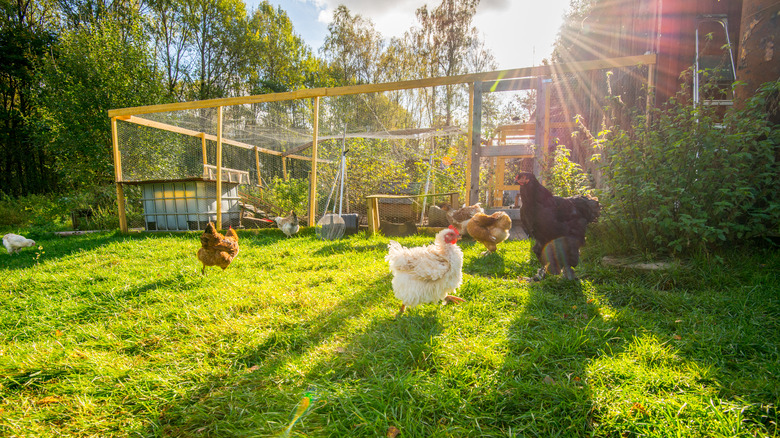 Free range hens are "housed in a way that allows for unlimited access to food and water and provides the freedom to roam within the area," but also given "continuous access to the outdoors during their laying cycle," according to the USDA Agricultural Marketing Service (AMS). The key phrase here is "access to the outdoors," as there is no regulation on what that looks like. Serious Eats notes that chickens could have access to a door in their barn that they never use, meaning they would spend most of their time indoors but still be considered free range. There's also no AMS requirement for how long the birds must be outside or how they're treated, and many are still subject to the same inhumane and disease-inducing treatments as their caged brethren (via PETA).