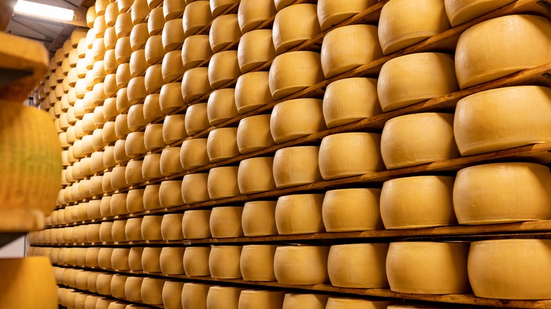 Despite its similarities to Parmigiano Reggiano, you don't have to break the bank to get ahold of Grana Padano. According to Wise Living Magazine, Grana Padano has a similar taste and texture to Parmigiano Reggiano but is significantly less expensive. This may have to do with the fact that Grana Padano comes from a larger Italian region, so more people are allowed to make it (via Bon Appétit). It could also be because the restrictions around Grana Padano are much looser. Parmigiano Reggiano cows can only eat food grown in the area and their milk has to be at the dairy within two hours of milking, while Grana Padano cows are subject to no such regulations, notes Saucy Dressings.