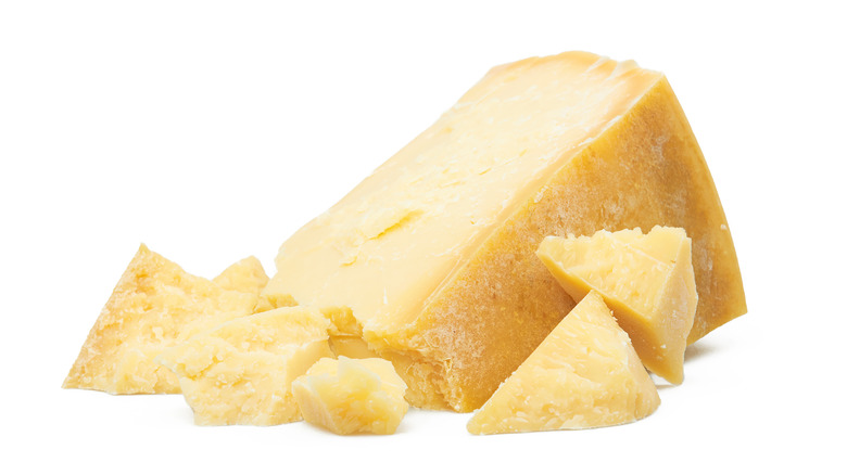 Among the Italian cheeses that are popular in America is Parmigiano Reggiano, which comes from skimmed or partially skimmed cow's milk and is hard, light yellow, and sharp (via The Spruce Eats). It's most commonly shaved on foods like salad and pasta, although it also pairs well with a glass of sparkling wine, according to Zingerman's Deli. While it's often mistaken for parmesan, don't get it twisted; these two are not the same. While "parmesan" is the English translation for "Parmigiano-Reggiano," the latter is heavily regulated in Italy and must be produced in specific Italian provinces to earn its name, notes The Spruce Eats.