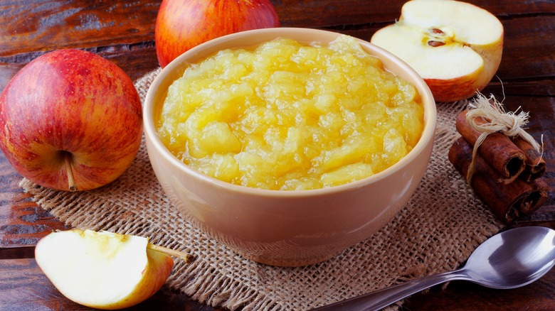 Applesauce can be made in various ways, but one of the easiest methods is mashing apples with your masher. There are many varieties of apples, and you can preserve your favorite one by making it into applesauce. Applesauce can be canned and enjoyed all year long, or you can keep this comforting autumn treat in the fridge for seven to 10 days (via Does It Go Bad).