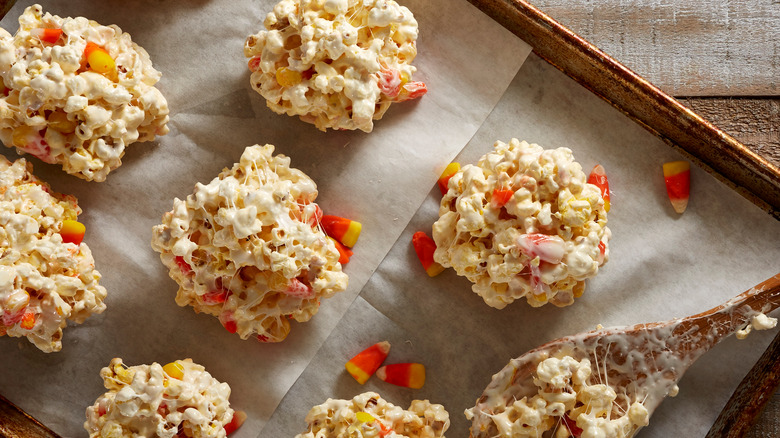 On the candy front we have that love-it-or-hate-it, tricolored triangle: the candy corn. This polarizing sweet has been popular since it was first invented in 1898 and routinely sells over 20 million pounds a year. More homemade treats, like popcorn balls and caramel apples, are classics that everyone loves. These two treats were particular favorites in the 1950s, with popcorn balls being a beloved party favor and caramel apples being the invention of the decade that has really stuck to the roof of our mouths (via Parade).