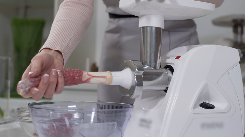 Serious Eats says the first step in the traditional process of making matura was slaughtering a goat. This included slitting its throat and collecting the blood in a bucket with salt. The goat's neck and back were then cut into small pieces and cooked together with various vegetables, such as eggplants, carrots, and onion. The goat's fat and salted blood was then added to the rest of the meat and fried together with seasonings. This mixture was then stuffed into the animal's intestines, creating mutura. Today, there are many sausage stuffers that you can buy to make the process easier. However, many modern recipes call for making the sausage by hand.