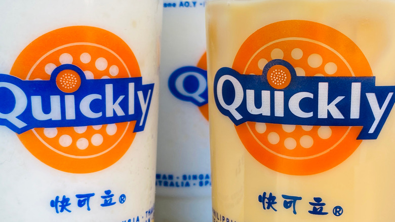If you're in a hurry and desperate for a bubble tea and a satisfying snack, Quickly is the answer for a drink and a small but filling meal. While it may not have the best quality boba, it is the go-to brand for something that'll satisfy a craving (though it won't exceed expectations). Recognizable by its orange and blue logo, Quickly is an older bubble tea chain founded in Taiwan in 1996 (per Technavio). It now has over 2,000 locations worldwide, from Africa and Europe to North America.