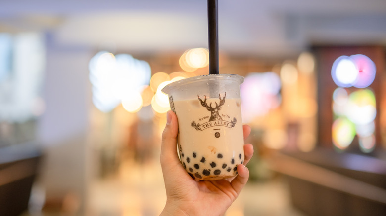 One of the most distinctive beverages in the world is known not for its taste or color but its look — bubble, or boba, tea. Despite the popularity of the drink today, its invention was a fairly recent happy accident in 1988. A Taiwanese woman, Lin Hsiu Hui — the product development manager of Chun Shui Tang – was enjoying her go-to dessert of fen yuan, a sweet tapioca pudding treat. While sipping her tea, a stroke of playful ingenuity compelled her to pour the tapioca balls into her beverage. Her coworkers loved the newly upgraded drink (via CNN). From there, boba made its way onto the tea menu and sparked the craze. Since it arrived in America in the 1990s (via Eater), the drink has risen from subculture to mainstream — the bubble tea market was valued at a staggering $2.4 billion in 2019 and continues to grow (via Allied Market Research).