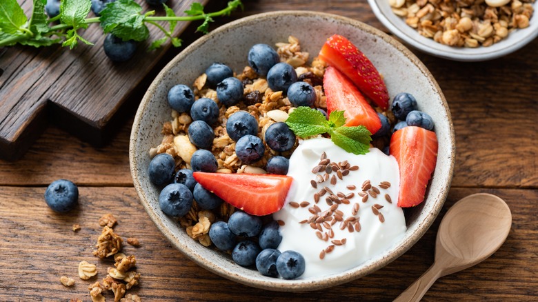 While breakfast was not always considered a necessary meal, today many people cannot start their mornings without it. There are tons of iconic options, but yogurt has long been a staple, often seen as an alternative to sugary breakfast foods like cereal and pastries. However, the tub of yogurt you pick up at the supermarket may not be as healthy as you'd think, which is why you should always check nutritional labels.