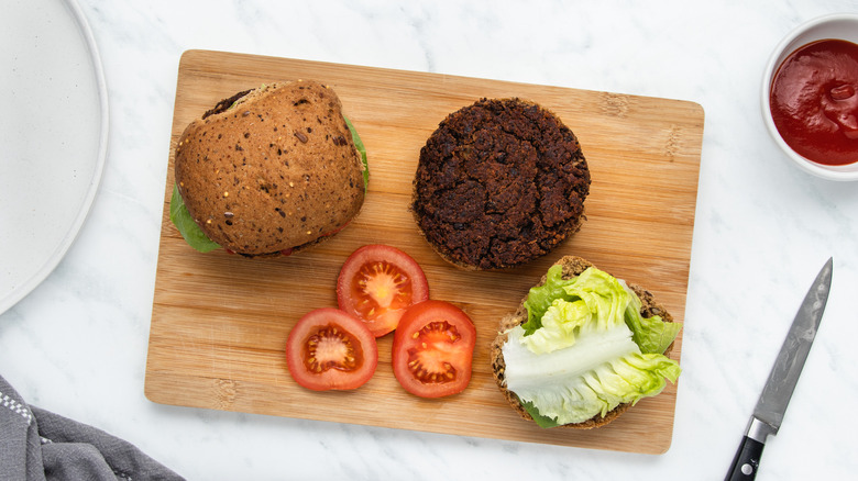 Once the patties are cooked, it's time to enjoy however you want best, but remember that the classic approach is a winner here. And don't worry if any patties end up uneaten — Brookes says of leftover bean burgers: "They should keep well in the fridge up to 3 days, or you can freeze them up to 3 months. To reheat, simply pop [them] in the oven."