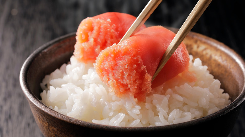 When it comes to eating fish eggs, people usually think of caviar; however, unlike caviar, which is roe from sturgeon found in the Black Sea, it is typically sold as an intact sac rather than loose eggs. Also it is quite a bit more affordable. For example, 4.5 ounces of Osetra caviar is expensive (over $300), while the same amount of mentaiko is only $11 (according to Eater). Often confused with tarako, which is plain and salted, mentaiko is marinated and, as a result, has a strong flavor profile and a deeper red color (via Medium).