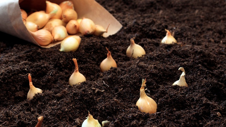 Onions are pretty stress-free when it comes to storage, though. According to Bon Appetit, most kinds of onions will last you for a decently long time as long as they are stored in a cool, dark, dry place. So anything from red, white, yellow, pearl, diminutive pearl, shallot, to cipollini will all stay safe to eat as long as they're tucked away in a cool, dark space, preferably with some air circulation. For these kinds of onions, it's also a good idea to keep them away from your potatoes, as they can cause your onions to start leaking.