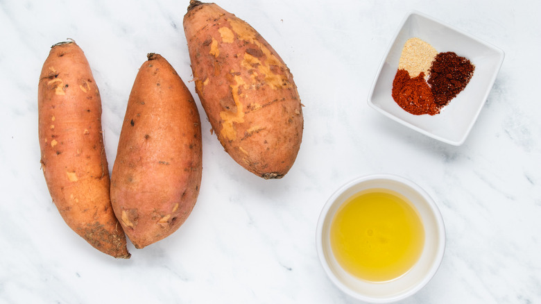 Gather the ingredients for oven-baked sweet potato fries