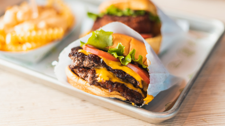 Pickles are a classic burger accompaniment, whether they're sliced and placed on top of the patty or made into a relish and mixed into the sauce. Shake Shack agrees, although they use pickles in a unique way to give their classic cheeseburgers a little extra oomph. As stated in their cookbook, "Shake Shack: Recipes & Stories," ShackSauce is made using kosher dill pickle brine, along with mayo, ketchup, Dijon mustard, and cayenne pepper.