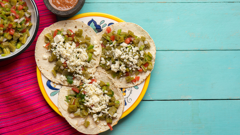 Meanwhile, queso fresco acts as a blank slate and can therefore be used less sparingly. Praised for leveling out spicy foods, the soft cheese is an easy addition within — and beyond — the canon of Mexican cuisine. A sprinkle of queso fresco improves everything from beans to small plates to huevos rancheros (per MasterClass). Just steer clear of foods like quesadillas, which call for melted cheese. Clearly, queso fresco and cotija can be way more than just a garnish.