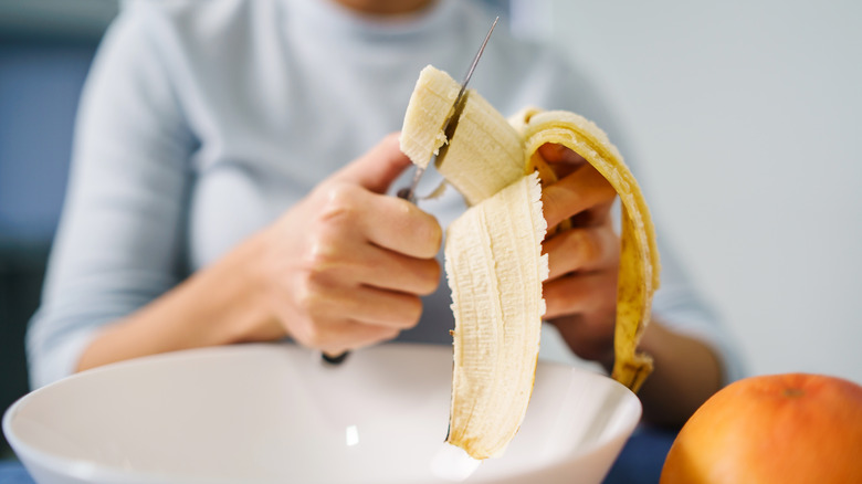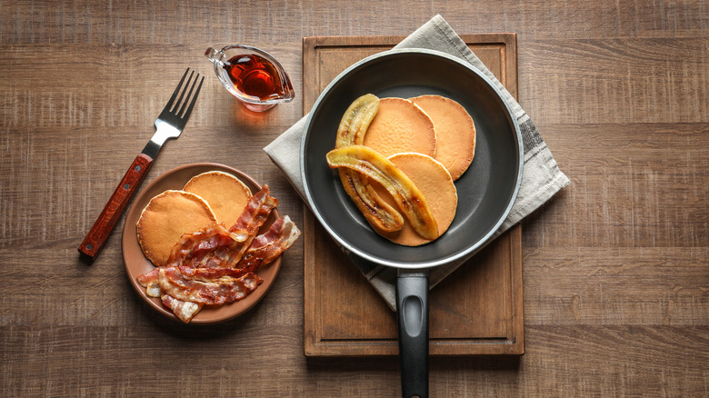At one point in time, banana peels were just that — banana peels, used only for the satisfaction of opening the ripe, sweet fruit found inside and then discarded along with the rest of your scraps. But those peels offer many of the same key nutrients you get from the fruit itself, including vitamin C, potassium, and magnesium (via Insider). So not only does finding ways to use them cut back your food waste, but it also adds an extra boost of vitamins and nutrients to your diet. Only, you'd probably never imagine creating bacon with them.
