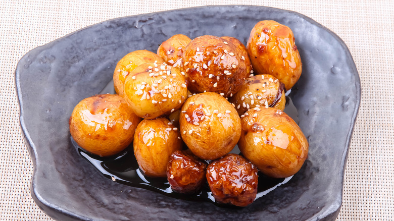 Potatoes can be prepared in many ways, but there is something extra delicious about biting into a spud with crunchy skin and tender flesh. The Korean dish gamja jorim delivers just such an experience that's also bursting with flavor. Some of gamja jorim's ingredients are traditionally used in Korean cooking (sesame oil, sesame seeds, gochujang, and rice wine), while others are not, like potatoes and carrots, according to a Korean Bapsang recipe.