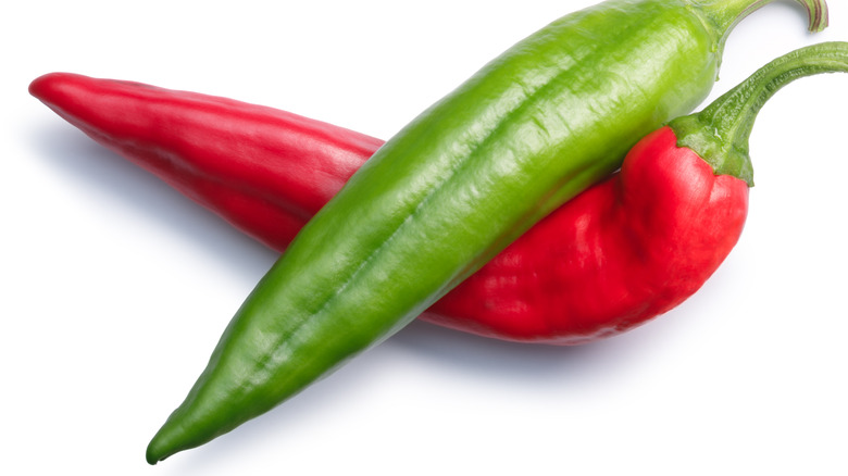 "When picked early and then roasted, Hatch green chiles have a very smoky, upfront flavor," Nate Cotanch of Zia Green Chile Company told Food & Wine. "Then as the chiles mature and turn red, they develop a slightly sweeter flavor profile and a more earthy underlying taste." With a Scolville score between 1,500 and 2,500 units, The Fresh Market likens the hatch chile's heat intensity to a poblano pepper. Though, as Cotanch explained, the hatch chile's fame comes from its flavor as opposed to its heat.
