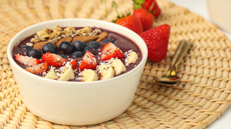 What better way to start your morning than with a refreshing Acai bowl? Some people know these as smoothie bowls, thanks to the refreshing smoothie-base that's filled with frozen Acai. And in case you didn't know, Acai is excellent for your health. According to Healthline, Acai berries are very nutrient-dense and full of antioxidants, and they can even help improve cholesterol. They also happen to taste pretty good, too!