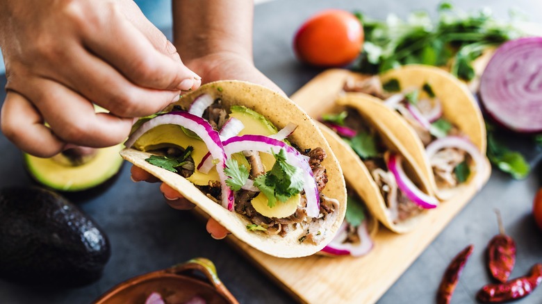 Taco Tuesdays are a staple in our households. Not only are tacos so simple and versatile, but they are extremely delicious. If you don't eat beef, make cauliflower tacos. If you love pork but hate vegetables, make them solely meat tacos (with a chipotle salsa, of course). Tacos are one of those meals that almost everyone can agree on, including your most beloved celebrities. Eva Longoria, actress and producer, for one, adores tacos. During an exclusive interview with Tasting Table, Eva Longoria did a deep dive into her Latina heritage as she dropped her new podcast, "Hungry for History."