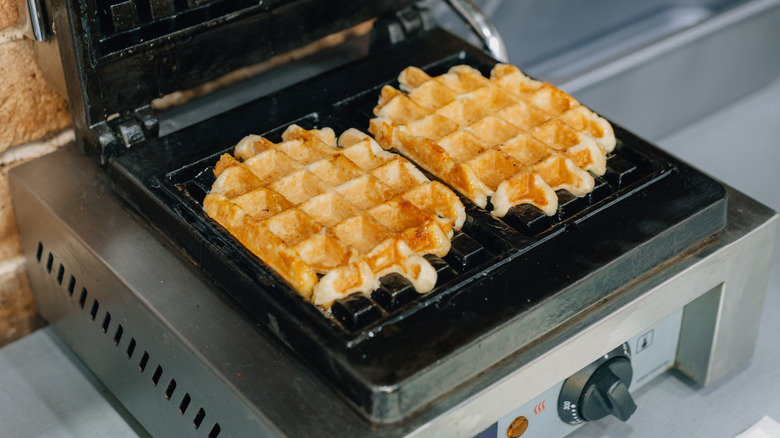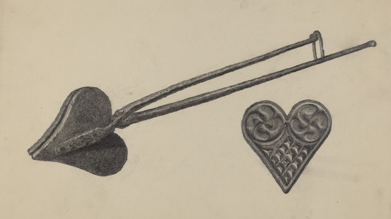 Over time, obelios spread throughout Europe. By the 13th century, they were a common foodstuff throughout the continent, enjoyed by nobles and peasants. Smithsonian Magazine notes that the name was adapted to the French 'oublies,' and people began customizing the metal plates used for cooking with unique designs. Early iterations featured religious iconography, family crests, and animal depictions. Per Mental Floss, the grid-patterned waffles we know today came about in the 15th century when Dutch waffle makers switched from round to rectangular metal plates for cooking. The Online Etymology Dictionary notes that this grid pattern likely led to the name 'waffle,' which descends from the Proto-Germanic 'wabila,' meaning 'web' or 'honeycomb.'