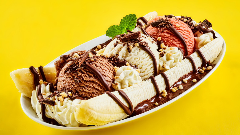 It is said that the banana split was invented by David Stickler in 1904, who combined chocolate, vanilla, and strawberry ice cream with toppings, whipped cream, and of course, sliced bananas. He even asked a glassmaker to create a vessel that could properly hold his creation for consumption, which is how the "banana boat" came to be, according to the Pennsylvania Center for the Book.