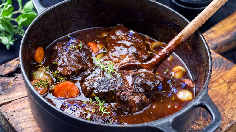 A cooking method that doesn't seem to get nearly enough press is the technique of braising. According to the Los Angeles Times, braising is a moist-heat cooking technique used to tenderize tougher cuts of meat. You place just enough liquid in the pot to cover the bottom to prevent the meat from sticking. The liquid is first brought to a boil and then the heat is reduced to a simmer. The pot is then covered and placed in the oven to begin a long, slow cooking process.