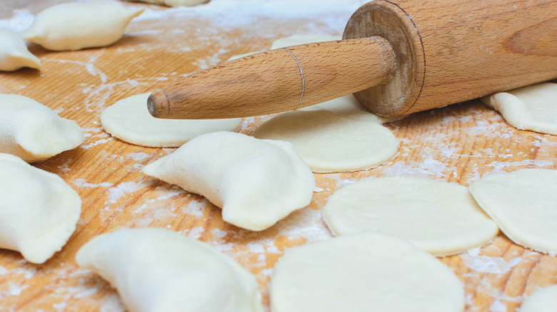 Simplicity in food is often key to why a particular ingredient catches on in cuisine. Hot water dough, for instance, is just a combination of flour, hot water, and salt, plus sometimes oil (via Earth to Veg). This mixture, sometimes also called scalded dough, is used in cultures around the world. Stuffed dumplings are one prime example of a dish that uses it, from Korean mandu and Japanese gyoza to European pierogi and Russian pelmeni. It's also made into some other foods, like stuffed bread, flatbread, laminated bread, and turnover varieties across the world.